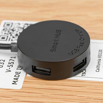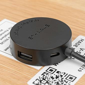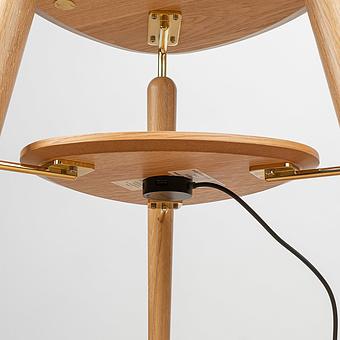 Здесь есть два встроенных USB-выхода для зарядки ваших устройств, сам столик тоже присоединяется к розетке через USB (адаптер в комплекте не поставляется).