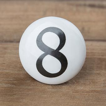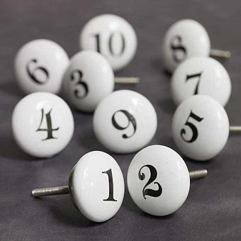 Уникальные ручки с изображением цифр выполнены в традиционном стиле из керамики. На белой фарфоровой глянцевой поверхности ручек чётко выделяются чёрные цифры. Ручки в винтажном стиле привлекают внимание своим необычным и стильным видом, способным сочетаться с различными типами интерьера.