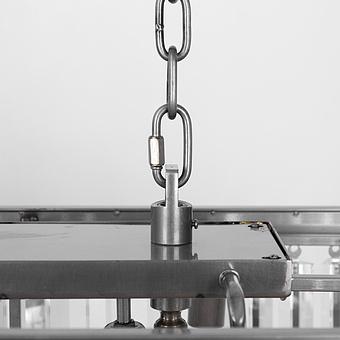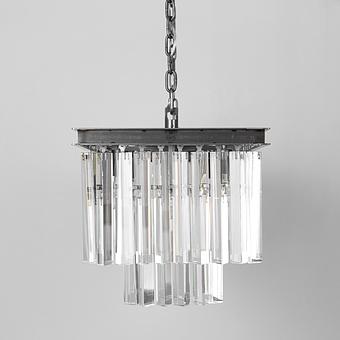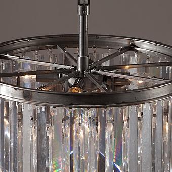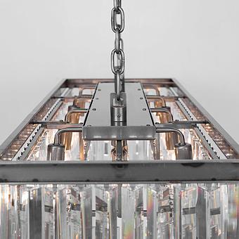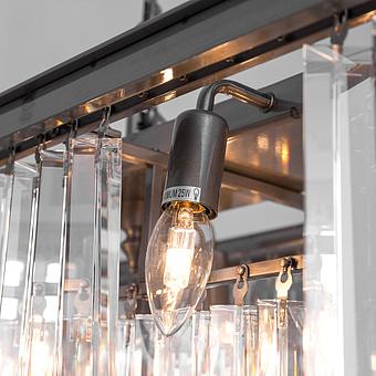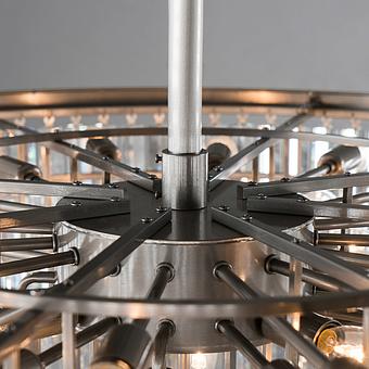 Светильники Odeon обладают потрясающей способностью распространять свет благодаря внушительному количеству хрустальных подвесок (большая люстра имеет более 380 кристаллов), а также их высокому качеству с точки зрения прозрачности. Эти роскошные кристаллы дерзко контрастируют с грубым необработанным металлом, противопоставляя мужественность покрытой шрамами от сварочного агрегата железной основы и ослепительную женственность хрусталя.