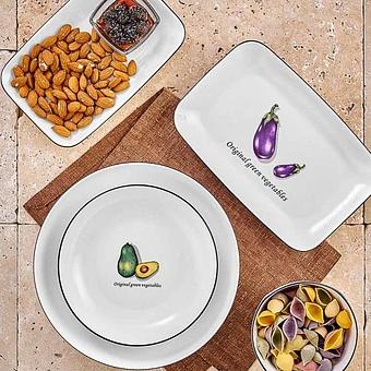 Тренд на здоровый образ жизни, вегетарианство и даже веганство находит свое отражение и в посуде. Представляем линейку мисок и блюд с изображениями овощей и надписью «Original green vegetables».