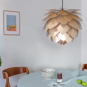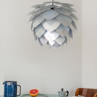 Коллекция подвесных светильников Сильвия в белой, чёрной или металлической расцветке, напоминающая одновременно нераскрывшийся бутон, голову насекомого и шишку, изменит ваше представление о месте источников света в интерьере.