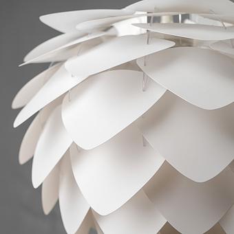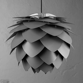 Коллекция подвесных светильников Сильвия в белой, чёрной или металлической расцветке, напоминающая одновременно нераскрывшийся бутон, голову насекомого и шишку, изменит ваше представление о месте источников...