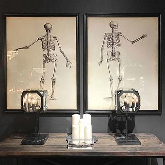Эта дерзкая парочка скелетов взята из литографии начала 18 века, когда анатомические атласы были на пике популярности. Она скопирована и увеличена, дабы показать мелкие детали оригинала. Тандем персонажей, который добавит дух старины в любой современный интерьер.