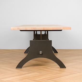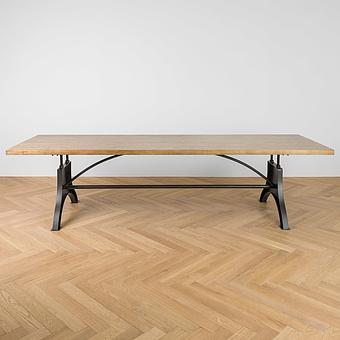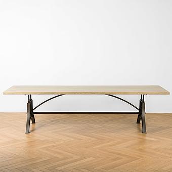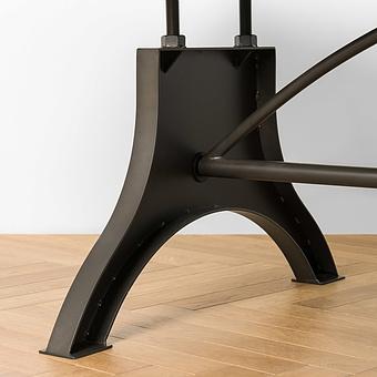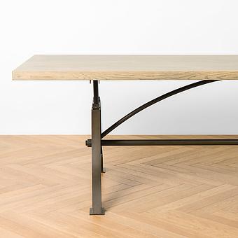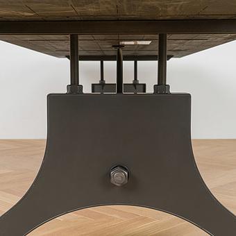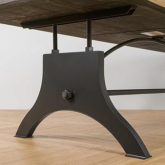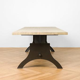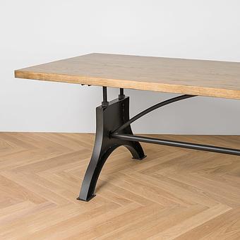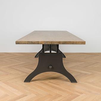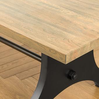 Столешница из массива дуба гармонично сочетается с металлическим основанием чёрного цвета и будет удачно смотреться в современном интерьере. Например, в стиле лофт.