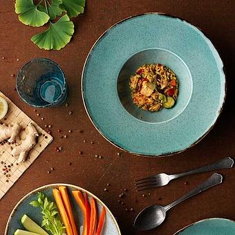 Цвета, подобранные для коллекции Trend Split, напоминают брызги лазурного моря. Многогранные оттенки бирюзы выглядят свежо и непринуждённо, привносят стиль и элегантность на ваш стол и дарят приятные впечатления от сервировки. Вам останется всего лишь приготовить вкусные блюда, и запоминающийся ужин гарантирован.