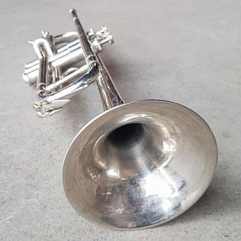 Труба звучит прекрасно как в симфоническом оркестре, так и в оформлении интерьера. Из этого уникального образца, кажется, ещё слышится яркий блестящий тембр, завораживающий слушателя с первых нот. Повреждения...