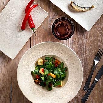 Посуда из этой коллекции обладает яркой индивидуальностью: выраженными линиями и неотшлифованной поверхностью с сильным визуальным эффектом. Салентина - регион на юго-востоке Италии, сложенный главным образом из известняка и доломитов. Нежный цвет тарелок Vulcania Salento ненавязчиво напоминает об этих уютных краях. Мы предлагаем вам взять от итальянцев замечательную традицию: уютные семейные ужины со множеством вкусных блюд.