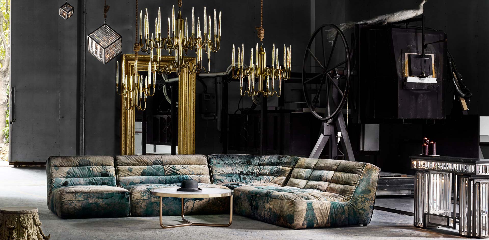Диванный модуль Shabby Sectional 2 Seater полиэстер Faded And Degraded Melting Paisley