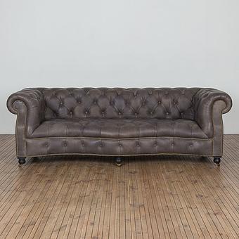 Трёхместный диван Serpentine 3 Seater натуральная кожа Destroyed Black
