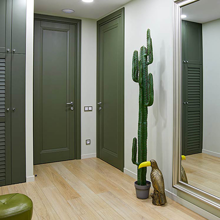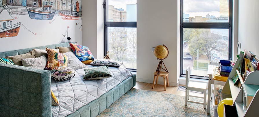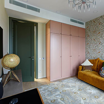 В интерьере квартиры аксессуары от Home Concept были использованы в различных помещениях: кухне-гостиной, спальне, прихожей, кабинете и детской комнате. Эти элементы декора привнесли в пространство бунтарский дух приключений и эстетического авантюризма, подчёркивая индивидуальность каждого уголка квартиры.
