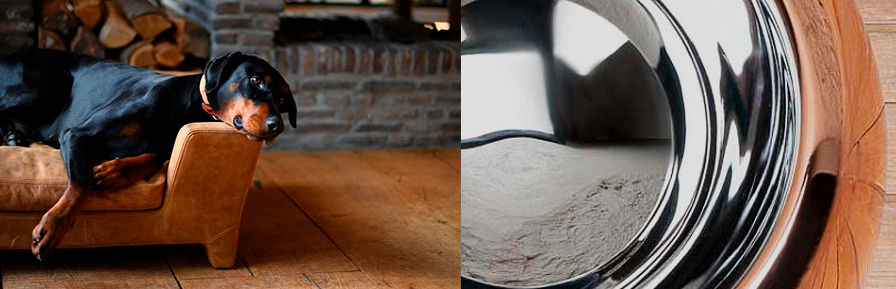 Используются классические дуб, бархат, крупный лён, с той лишь разницей, что ткани подушек и обивки пропитаны грязе- и водостойким составом Teflon®, что делает эти красивые модели еще и невероятно практичными. Кроме этого имеются необходимые любым домашним животным миски и подставки под них.
