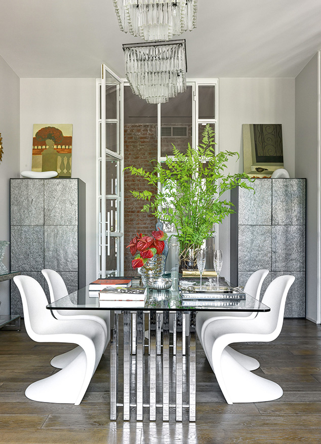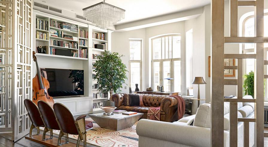 Прожив много лет во Франции, хозяйка квартиры на Патриарших прудах захотела воссоздать парижскую атмосферу у себя дома. Раньше в этом помещении был офис с многочисленными перегородками и потолками армстронг, которые, конечно же, сразу начали демонтировать. “Когда мы убрали все лишнее, то увидели, что высота комнат на самом деле 3,6 м.