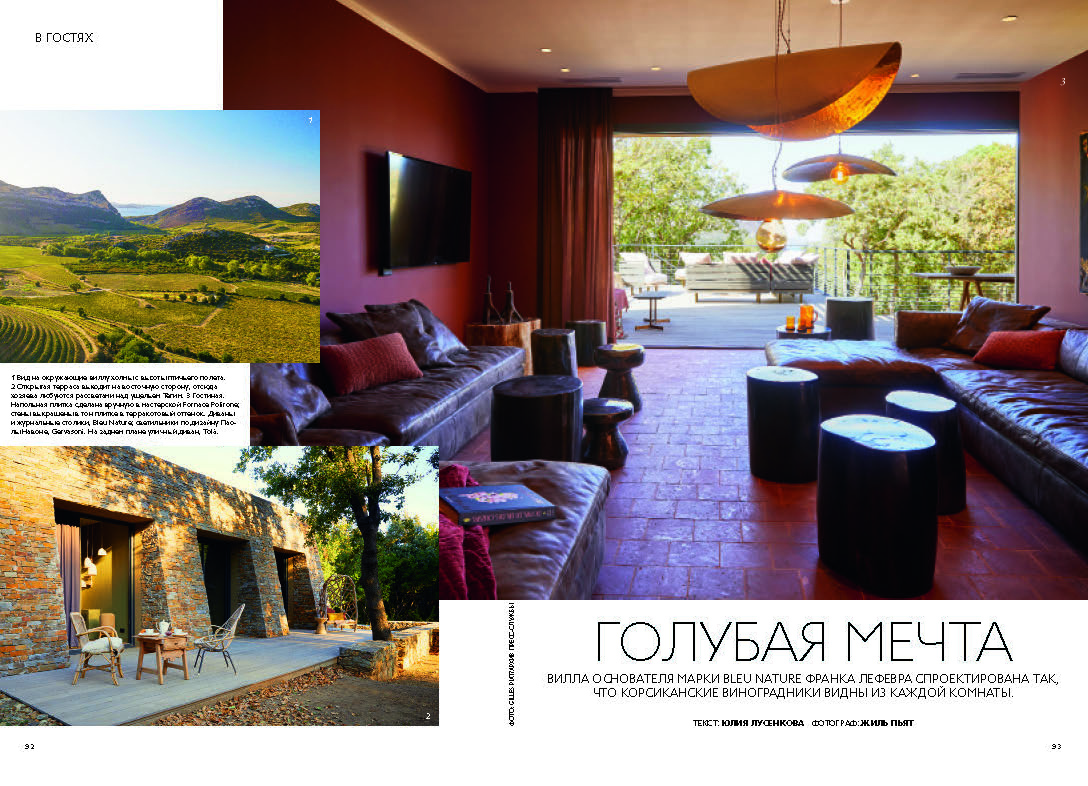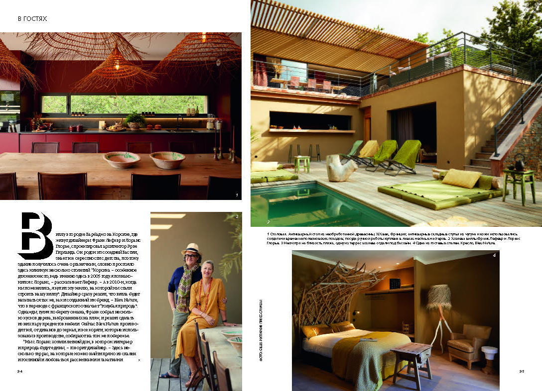 Основатель бренда Bleu Nature дизайнер Франк Лефевр и его жена Лоранс Глорье живут в вилле в городке Барбаджо на Корсике.