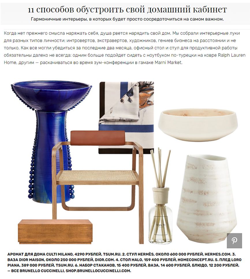 Наша мебель, лампа и ковер в оформлении домашнего кабинета в статье журнала Tatler