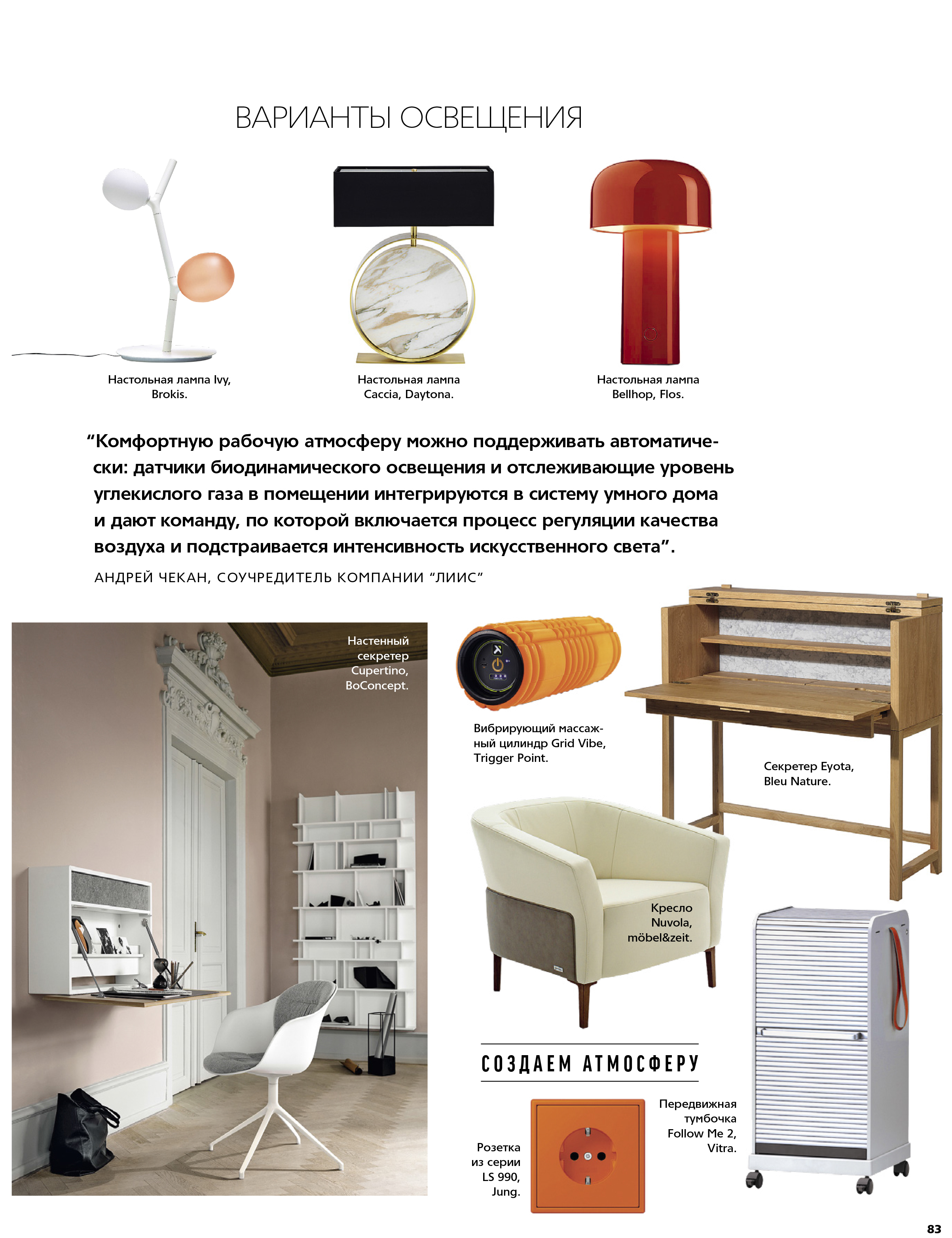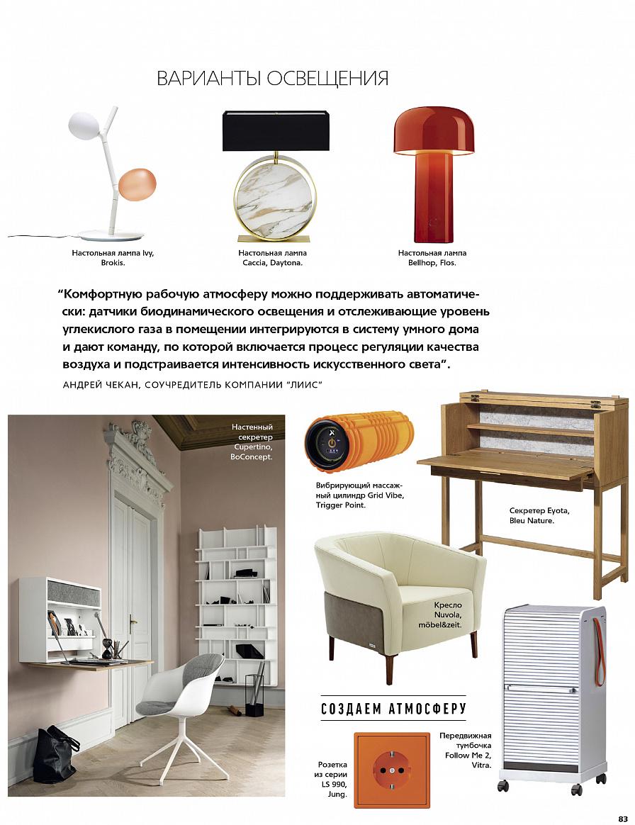 Когда нет возможности выделить для работы отдельный кабинет, выкроите место для компактного письменного стола в какой-нибудь проходной зоне. Чаще всего это делают в гостиной, потому что она самая большая по площади.