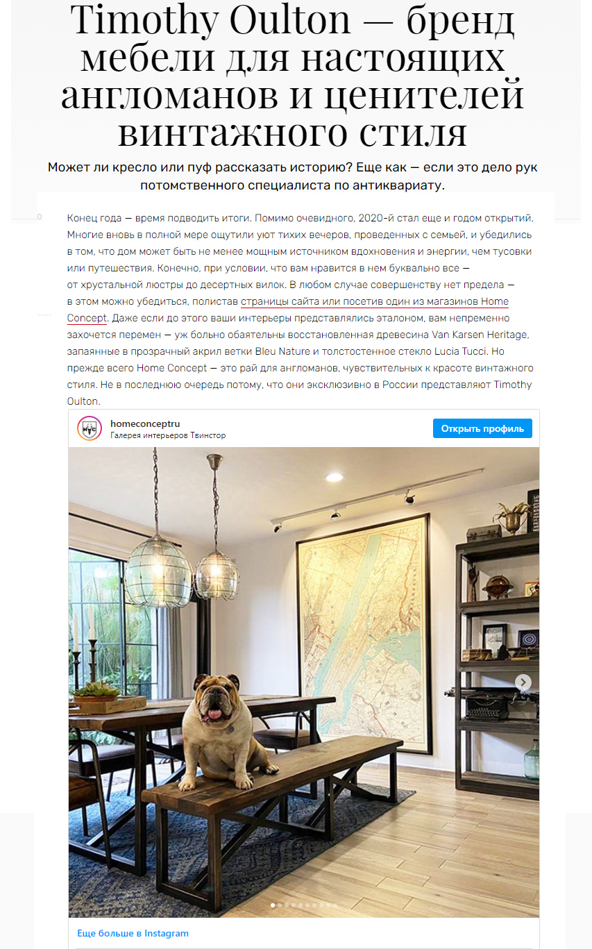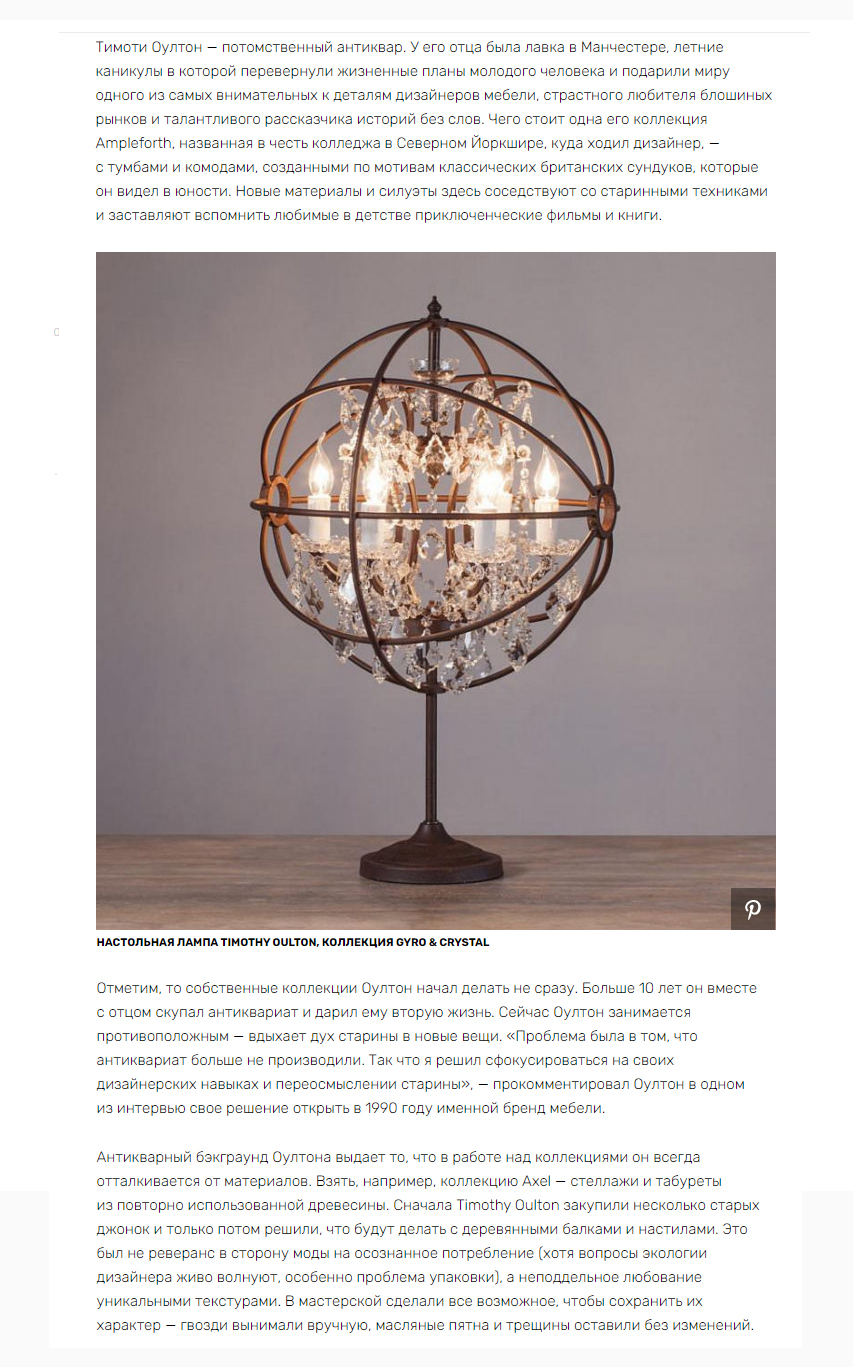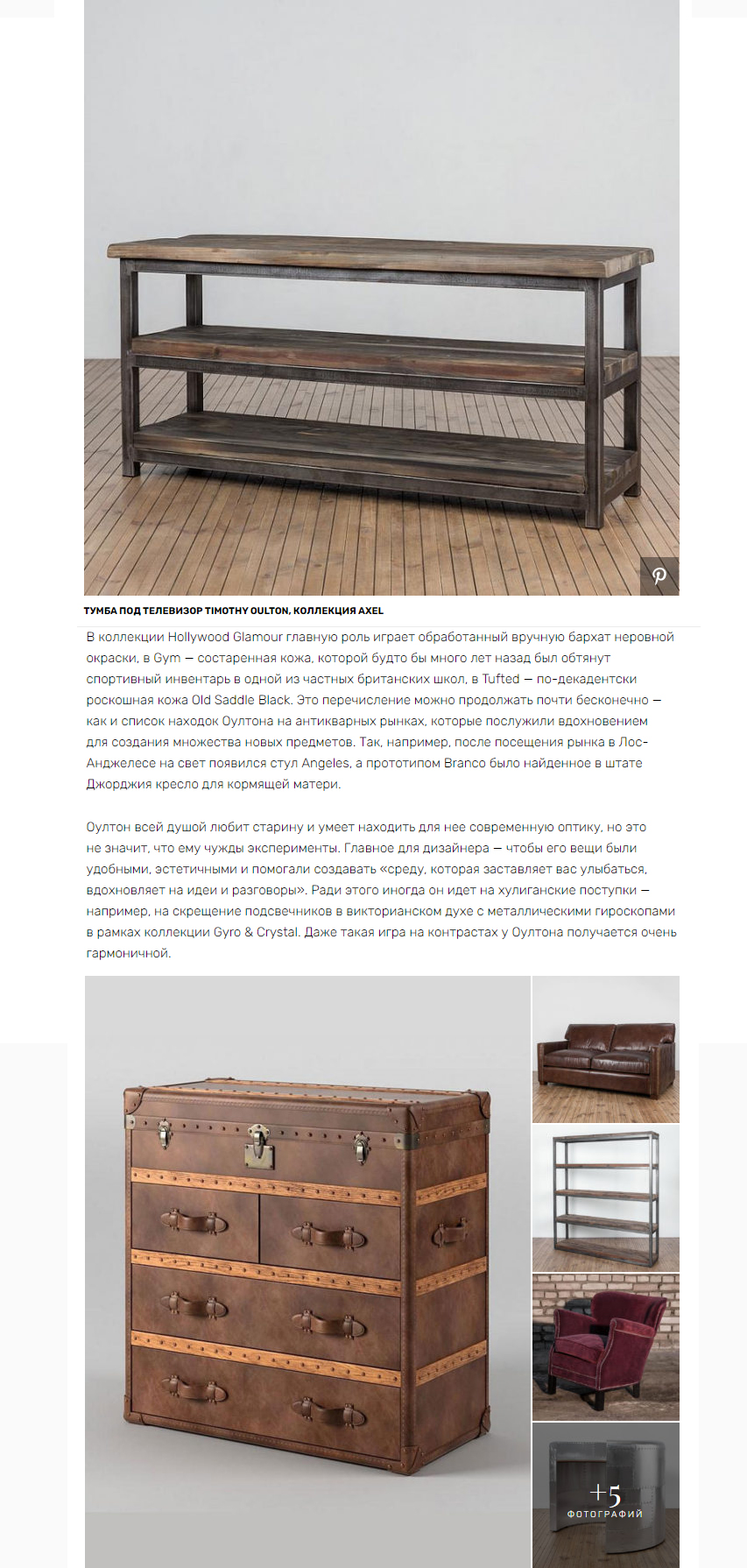 Может ли кресло или пуф рассказать историю? Секреты притягательности бренда Timothy Oulton в статье журнала Tatler