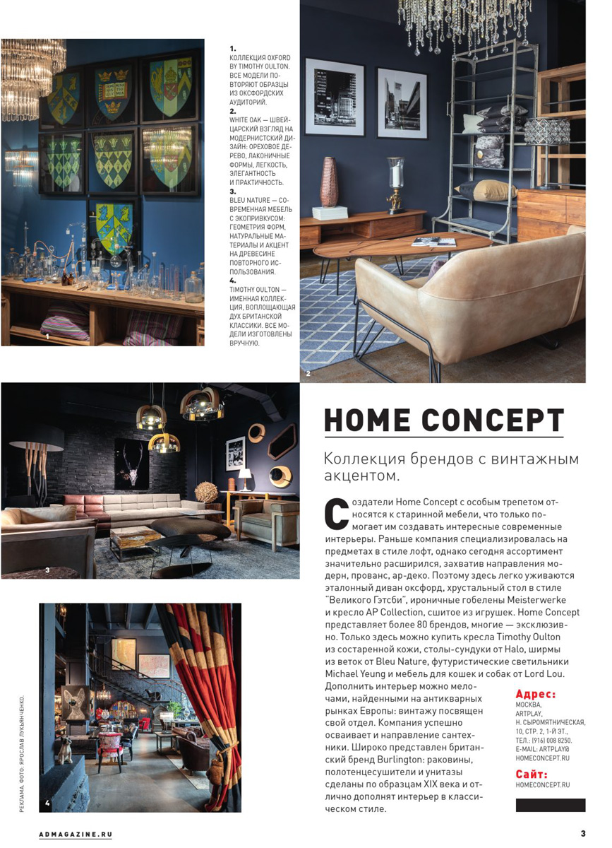 Интерьер флагманского шоу-рума Home Concept в специальном выпуске журнала Architectural Digest