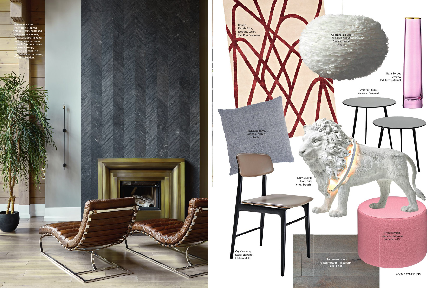 Кресло-лежанка Oviedo в каминной зоне загородного дома на страницах журнала Architectural Digest