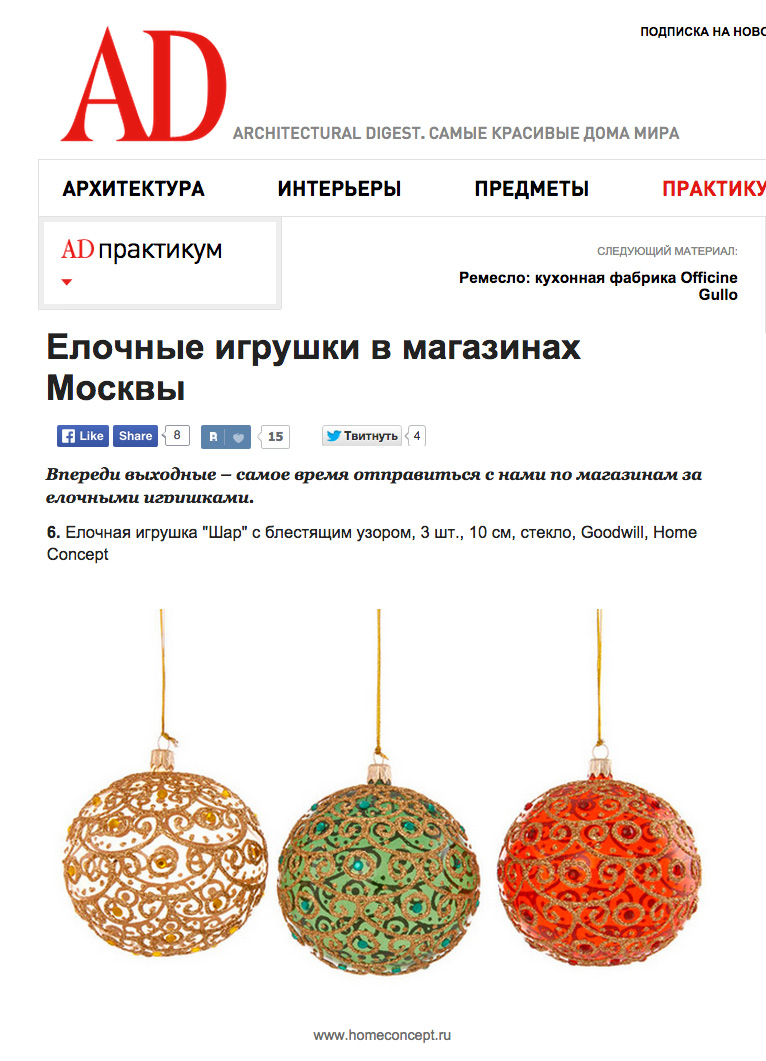 Ёлочные игрушки в подборке сайта Architectural Digest