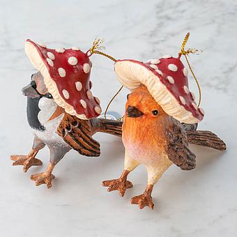 Вазы, лампы, подсвечники, статуэтки и даже крючки в виде грибов — всё это не просто модные аксессуары. Это визуальные «споры» уюта, которые прорастают в доме с лёгкостью и очарованием. Украшенные изображениями грибов подушки, текстиль или ёлочные игрушки добавляют в обстановку природное очарование и тёплый, сказочный акцент.