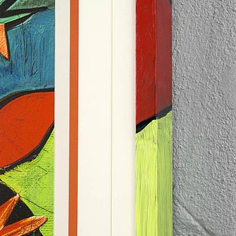Каждый предмет — не просто мебель, а полноценный арт-объект. Прикроватные столики в форме карточных мастей, кресла с обивкой, расписанной граффити, пуфик с дерзкой акцентной частью, яркая копилка с рисунком в стиле комиксов, который будто сошёл со страницы графического романа — всё это вызывает эмоции с первого взгляда. Или, например, картины серии Deer Pop Art. Это абстрактные олени, напечатанные на холсте и вручную окрашенные акрилом, как своеобразная дань Энди Уорхолу: с насыщенными пятнами цвета, резкими контрастами и живым характером. Каждое полотно уникально и добавляет интерьеру динамику и игру.