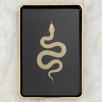 Изображения змеи органично впишутся в пространство в самых разных формах: от настольных ламп и подсвечников до зеркал, шкатулок, ёлочных игрушек и декоративных ковров. Это может быть как тонкий намёк — гравировка или фактура, — так и яркий акцент в виде арт-объекта.
